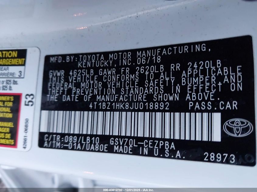2018 TOYOTA CAMRY 2018 року Бензин, 3.5, Передній привід, vin - 4T1BZ1HK8JU018892 з США