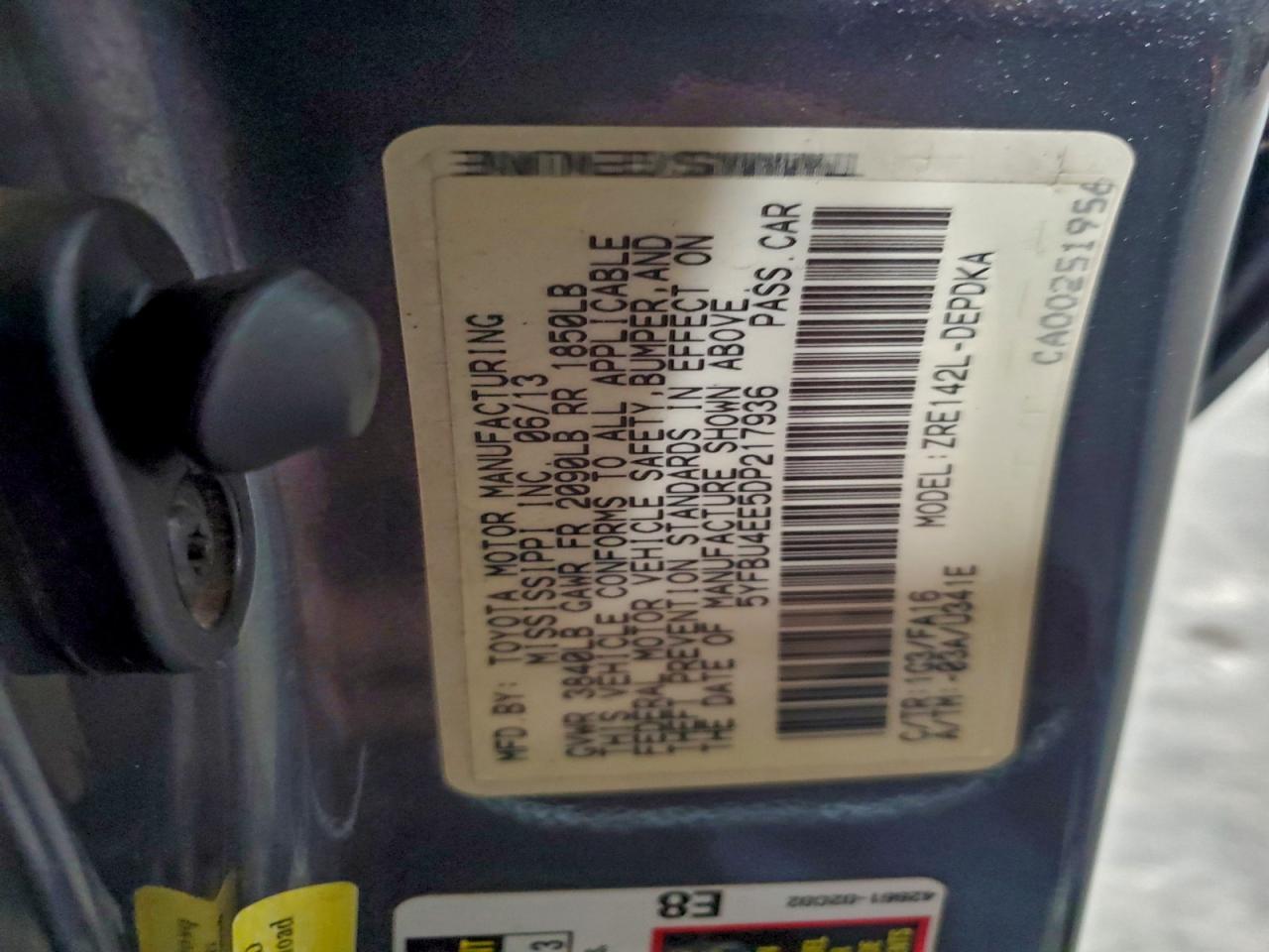 2013 TOYOTA COROLLA 2013 року Бензин, 1.8, , vin - 5YFBU4EE5DP217936 з США