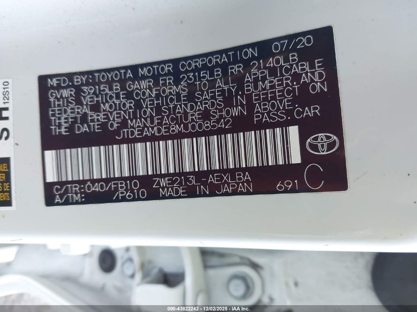 2021 TOYOTA COROLLA LE