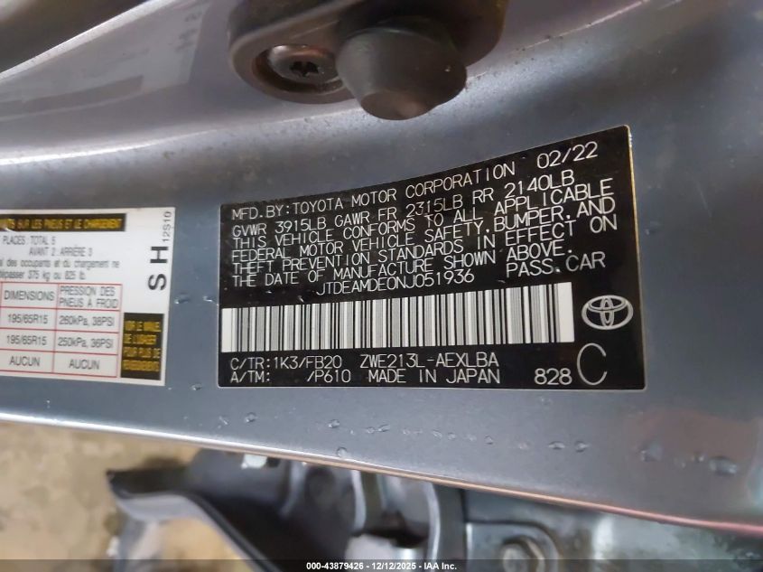 2022 TOYOTA COROLLA LE