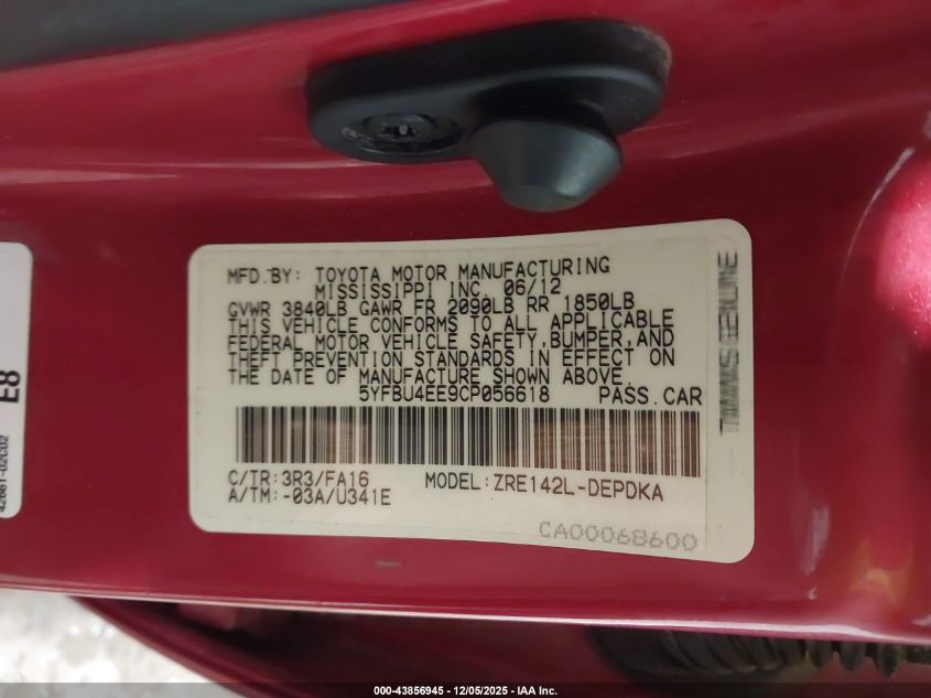 Колір ЧервонийЦиліндри 4Привід Передній привідVIN 5YFBU4EE9CP056618Стан Заводиться та їде (перевірено)Ушкодження Передня або задня AutoRIA
