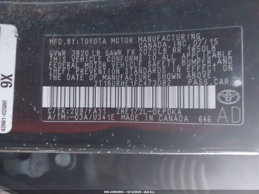 2015 TOYOTA COROLLA 2015 року Бензин, 1.8, Передній привід, vin - 2T1BURHE1FC473082 з США