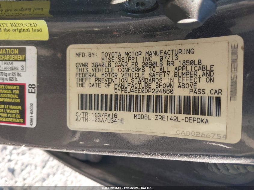 Колір Циліндри 4Привід Передній привідVIN 5YFBU4EE0DP224860Стан НевідомоУшкодження Передня і задня AutoRIA