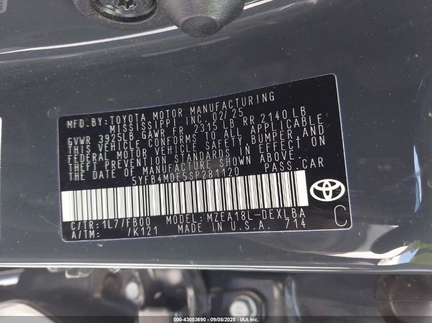 2025 TOYOTA COROLLA 2025 року Бензин, 2.0, Передній привід, vin - 5YFB4MDE5SP281120 з США