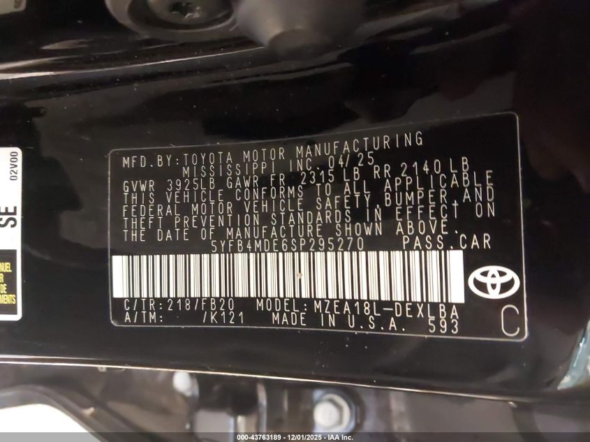 2025 TOYOTA COROLLA 2025 року Бензин, 2.0, Передній привід, vin - 5YFB4MDE6SP295270 з США
