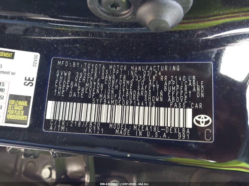 2024 TOYOTA COROLLA 2024 року Бензин, 2.0, Передній привід, vin - 5YFB4MDE0RP144192 з США