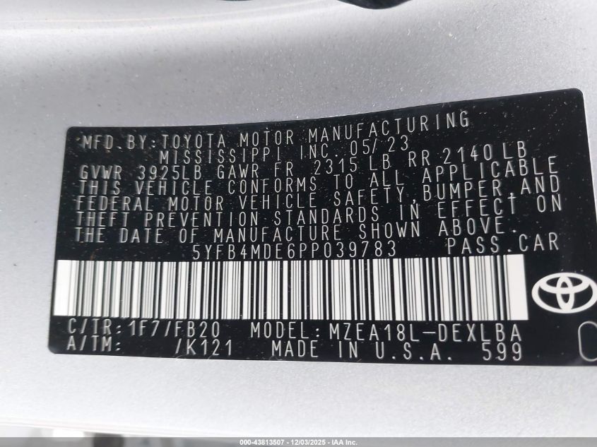 2023 TOYOTA COROLLA 2023 року Бензин, 2.0, Передній привід, vin - 5YFB4MDE6PP039783 з США