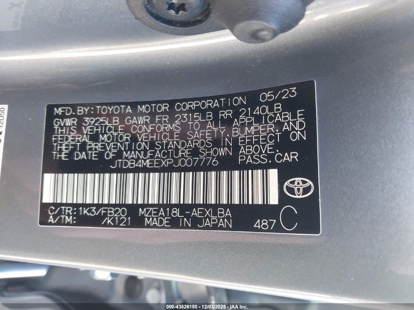2023 TOYOTA COROLLA LE