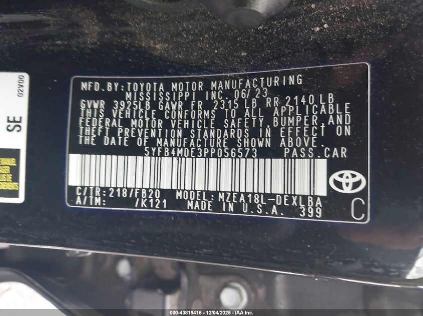 2023 TOYOTA COROLLA 2023 року Бензин, 2.0, Передній привід, vin - 5YFB4MDE3PP056573 з США