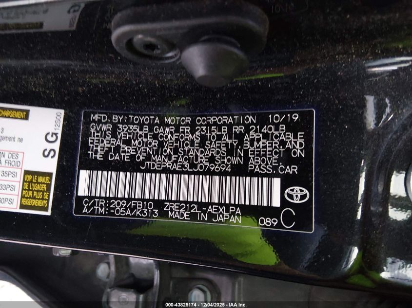 2020 TOYOTA COROLLA 2020 року Бензин, 1.8, Передній привід, vin - JTDEPRAE3LJ079694 з США