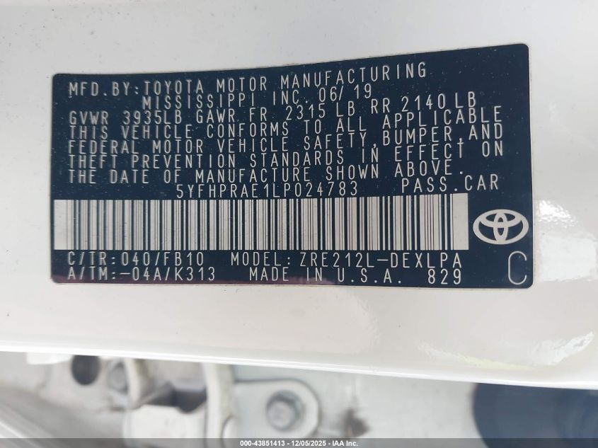 2020 TOYOTA COROLLA 2020 року Бензин, 1.8, Передній привід, vin - 5YFHPRAE1LP024783 з США