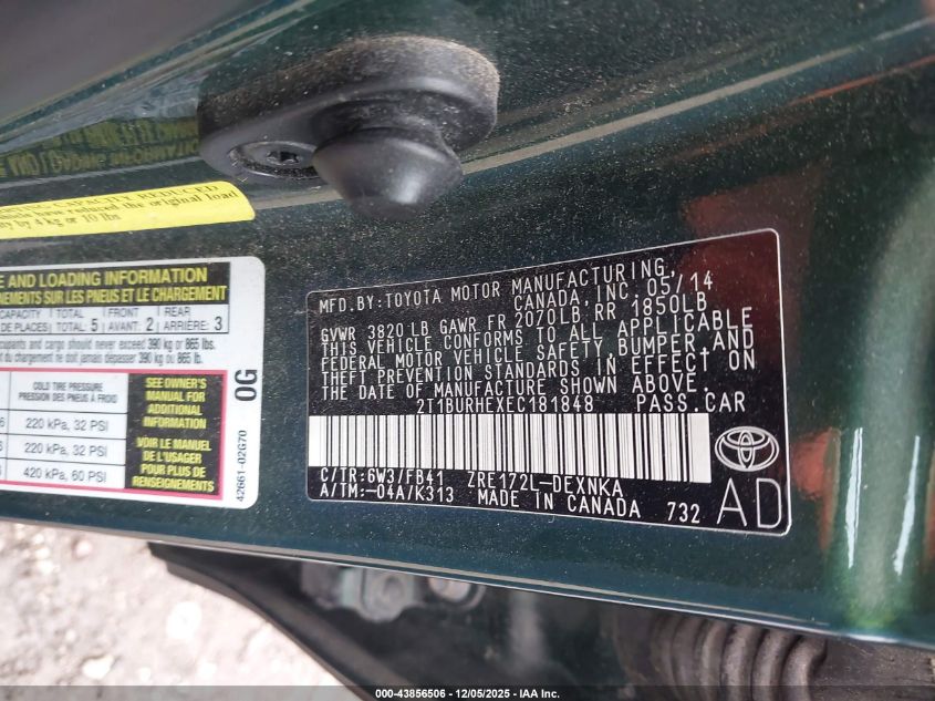 2014 TOYOTA COROLLA 2014 року Бензин, 1.8, Передній привід, vin - 2T1BURHEXEC181848 з США