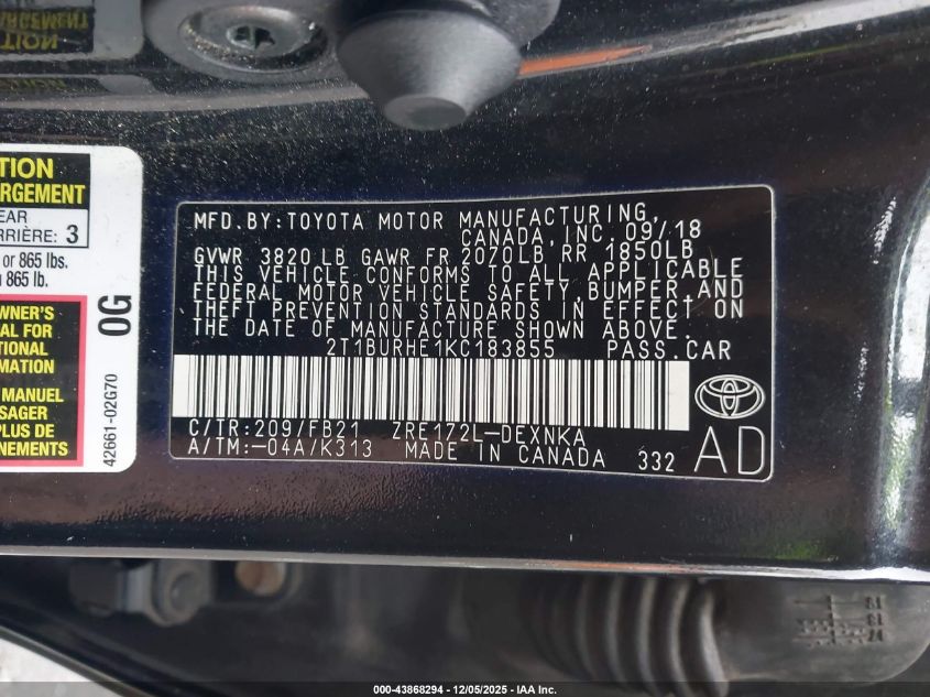 2019 TOYOTA COROLLA L