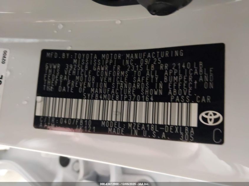 2026 TOYOTA COROLLA 2026 року Бензин, 2.0, Передній привід, vin - 5YFB4MDE8TP370164 з США