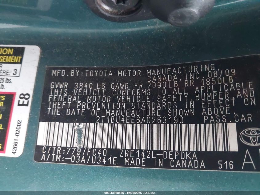 2010 TOYOTA COROLLA 2010 року Бензин, 1.8, Передній привід, vin - 2T1BU4EE6AC263190 з США