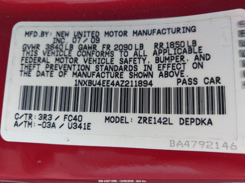 Колір БургундіяЦиліндри 4Привід Передній привідVIN 1NXBU4EE4AZ211894Стан Заводиться та їде (перевірено)Ушкодження Передня або задня AutoRIA