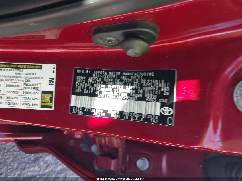 2022 TOYOTA COROLLA 2022 року Бензин, 1.8, Передній привід, vin - 5YFEPMAE7NP299602 з США