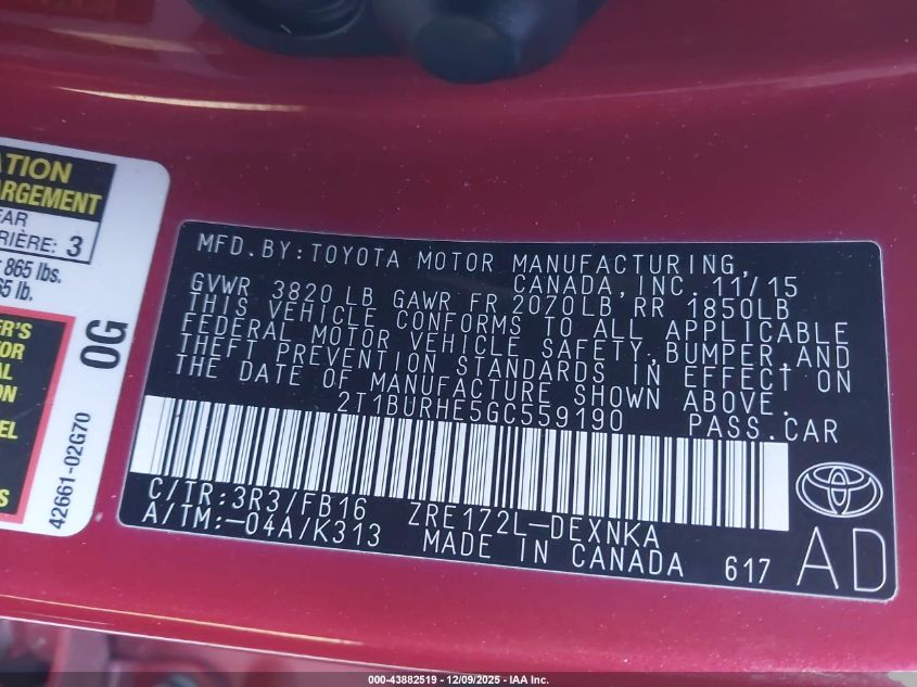 2016 TOYOTA COROLLA L