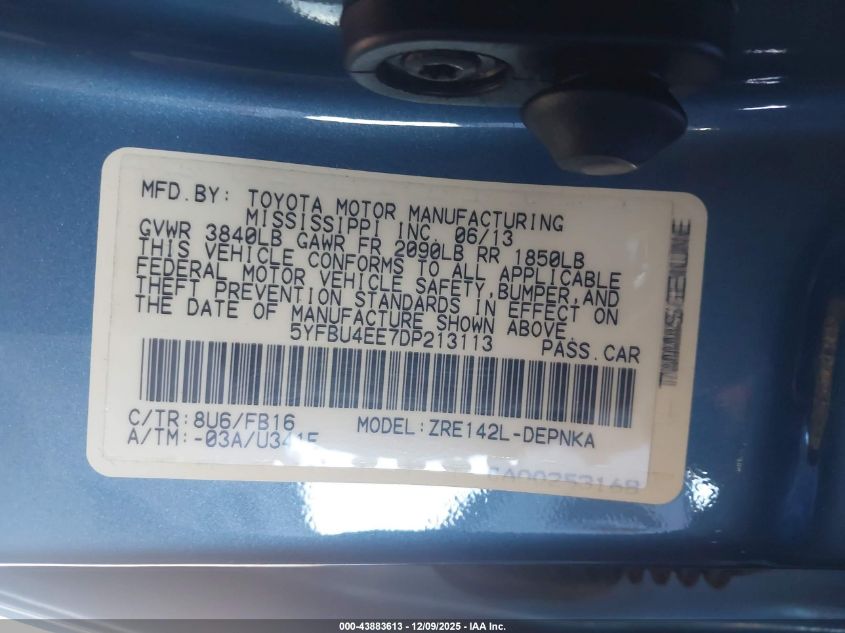 2013 TOYOTA COROLLA 2013 року Бензин, 1.8, Передній привід, vin - 5YFBU4EE7DP213113 з США