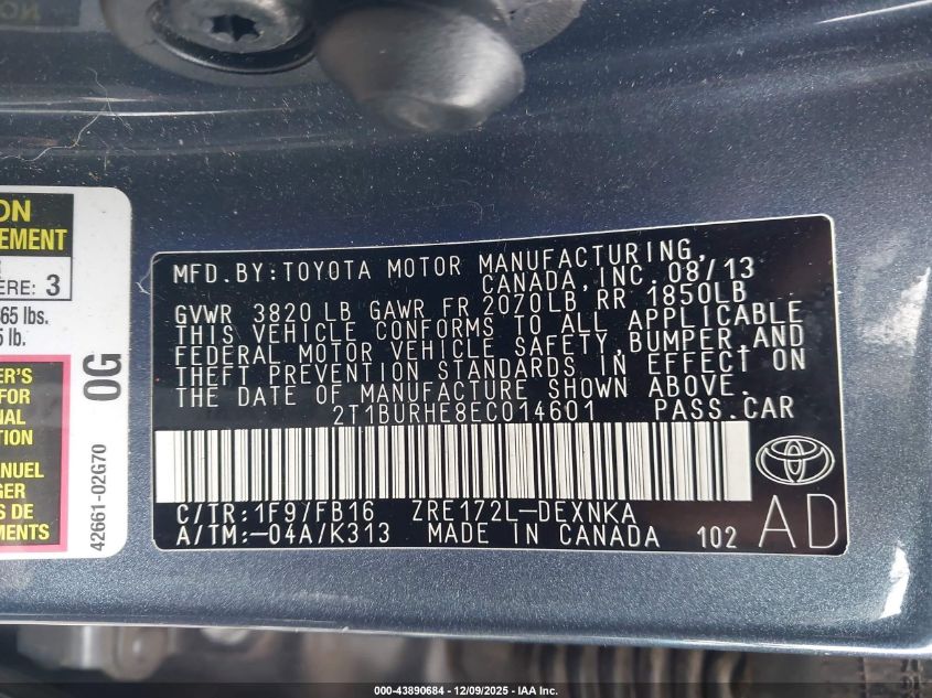 2014 TOYOTA COROLLA 2014 року Бензин, 1.8, Передній привід, vin - 2T1BURHE8EC014601 з США