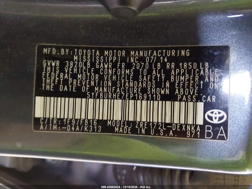 2014 TOYOTA COROLLA 2014 року Бензин, 1.8, Передній привід, vin - 5YFBURHE7EP169110 з США