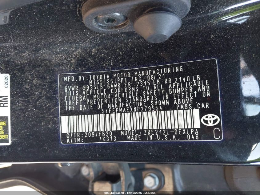 2022 TOYOTA COROLLA LE
