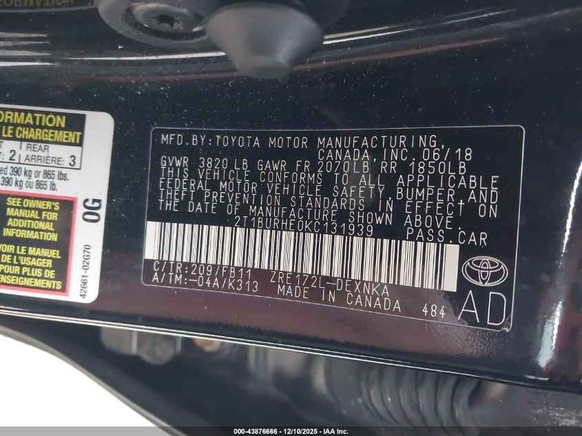 2019 TOYOTA COROLLA L