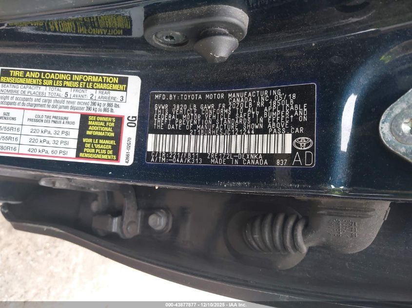 2018 TOYOTA COROLLA 2018 року Бензин, 1.8, Передній привід, vin - 2T1BURHE5JC121244 з США
