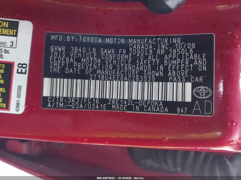 2010 TOYOTA COROLLA BASE