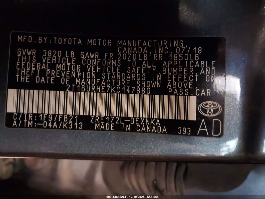2019 TOYOTA COROLLA 2019 року Бензин, 1.8, Передній привід, vin - 2T1BURHE7KC147880 з США