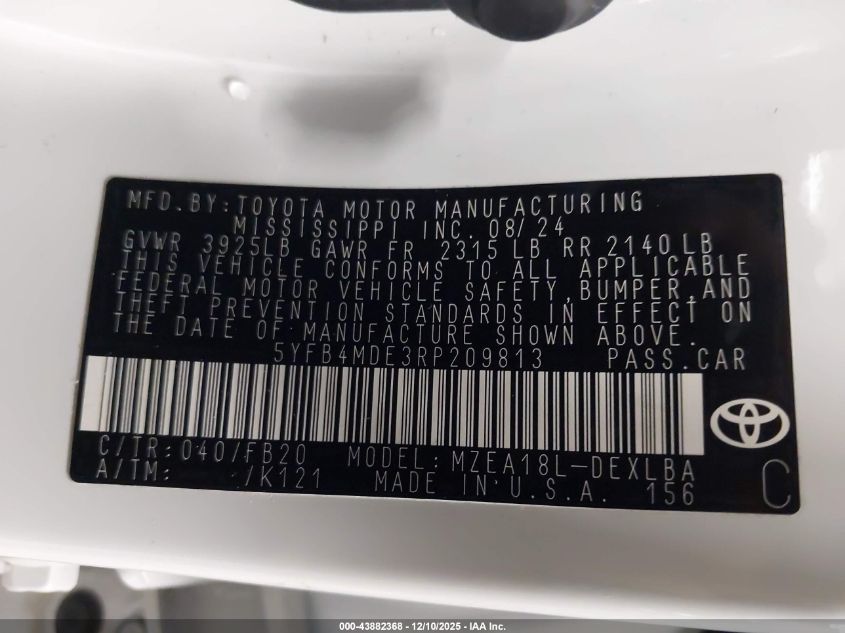 2024 TOYOTA COROLLA 2024 року Бензин, 2.0, Передній привід, vin - 5YFB4MDE3RP209813 з США