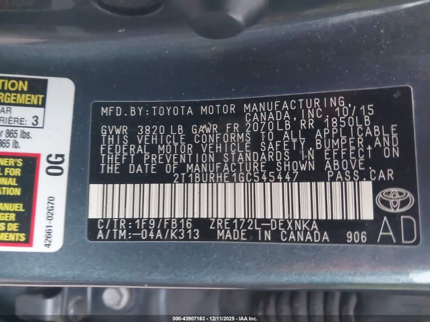 2016 TOYOTA COROLLA 2016 року Бензин, 1.8, Передній привід, vin - 2T1BURHE1GC545447 з США