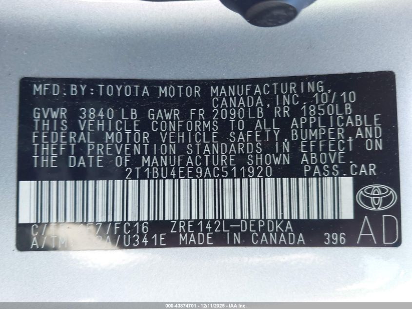 2010 TOYOTA COROLLA 2010 року Бензин, 1.8, Передній привід, vin - 2T1BU4EE9AC511920 з США