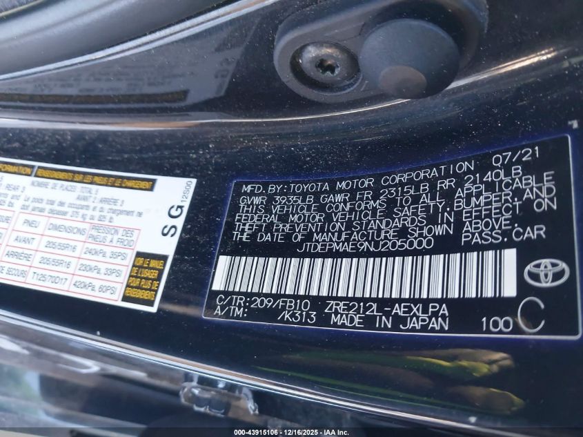 2022 TOYOTA COROLLA 2022 року Бензин, 1.8, Передній привід, vin - JTDEPMAE9NJ205000 з США