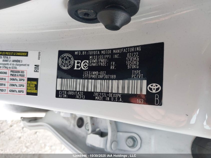 2022 TOYOTA COROLLA 2022 року Бензин, , Передній привід, vin - 5YFBPMBEXNP307189 з США