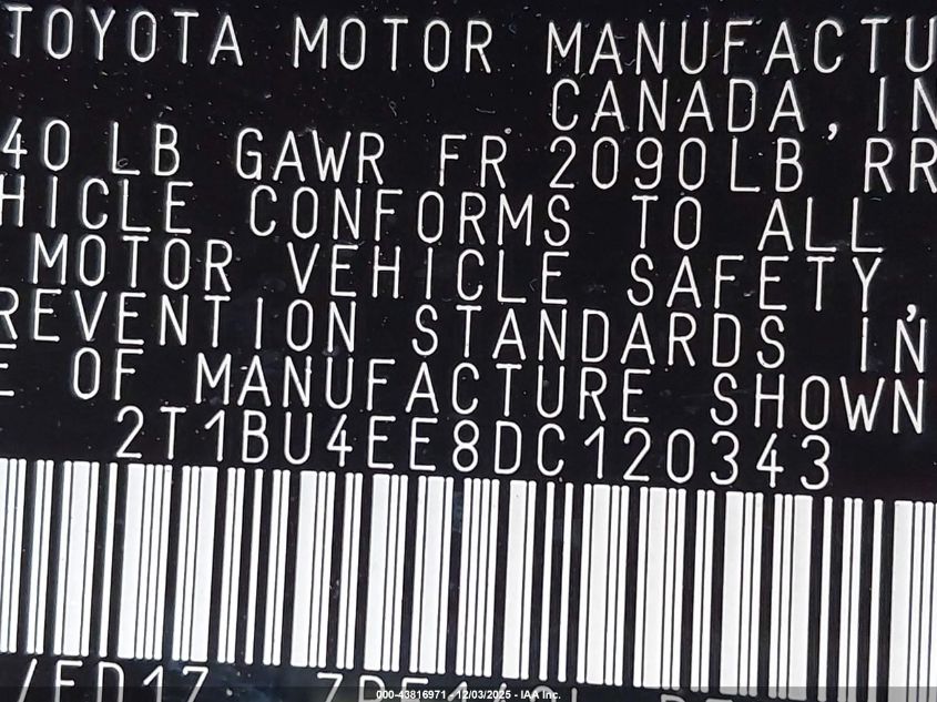 2013 TOYOTA COROLLA 2013 року Бензин, 1.8, Передній привід, vin - 2T1BU4EE8DC120343 з США