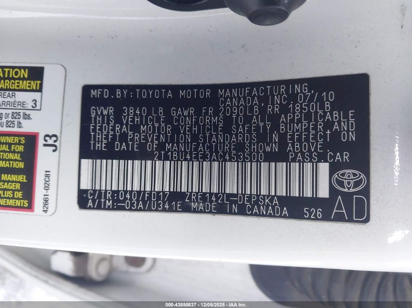 2010 TOYOTA COROLLA BASE