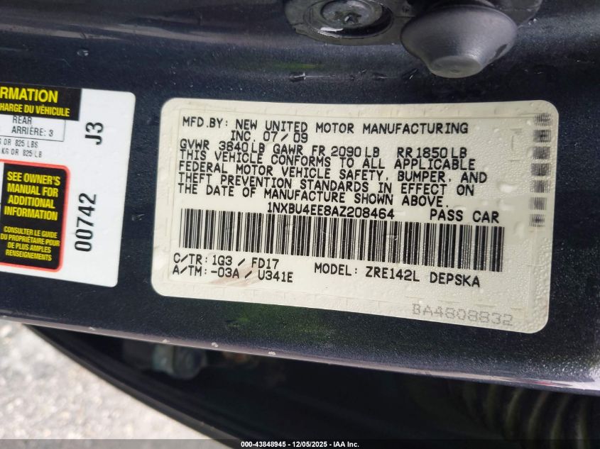 Колір СірийЦиліндри 4Привід Передній привідVIN 1NXBU4EE8AZ208464Стан Заводиться та їде (перевірено)Ушкодження Передня ліва AutoRIA