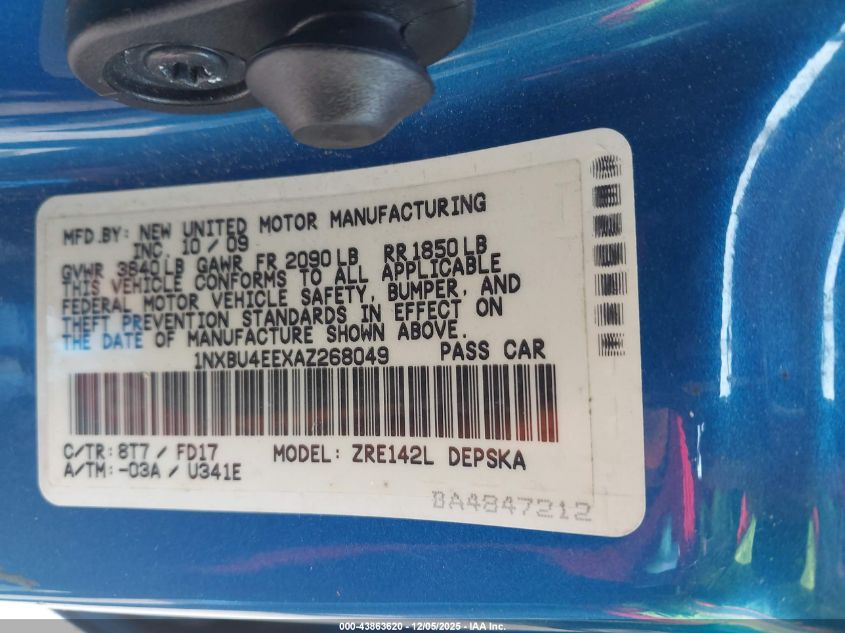 2010 TOYOTA COROLLA 2010 року Бензин, 1.8, Передній привід, vin - 1NXBU4EEXAZ268049 з США