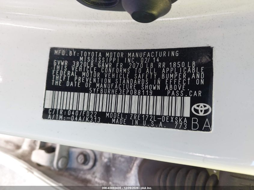 Колір БілийЦиліндри 4Привід Передній привідVIN 5YFBURHE3EP088119Стан Заводиться та їде (перевірено)Ушкодження Передня ліва AutoRIA