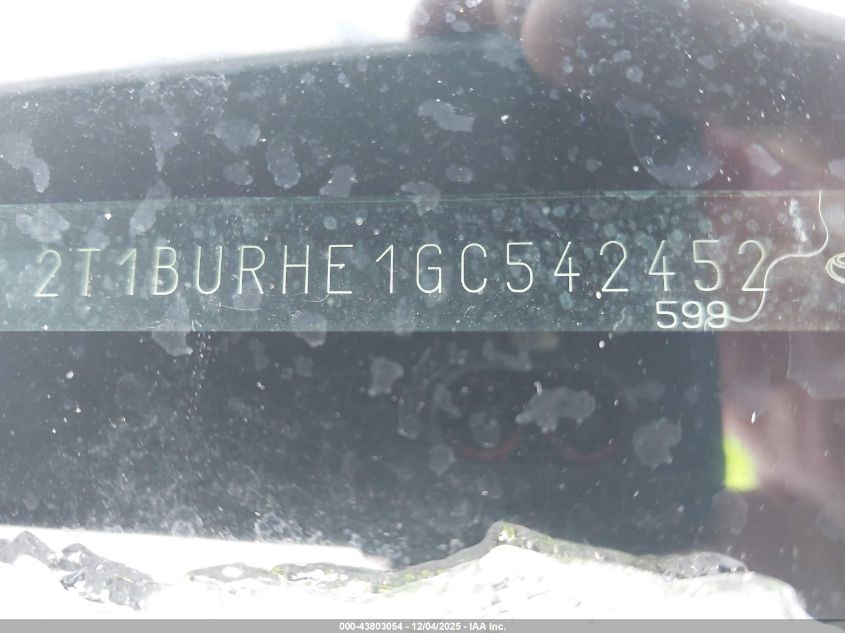2016 TOYOTA COROLLA 2016 року Бензин, 1.8, Передній привід, vin - 2T1BURHE1GC542452 з США
