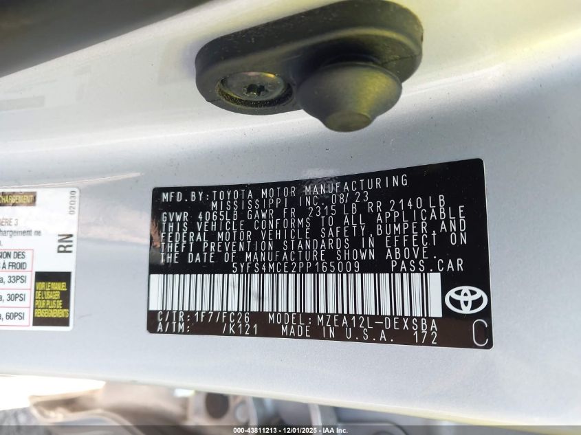 2023 TOYOTA COROLLA 2023 року Бензин, 2.0, Передній привід, vin - 5YFS4MCE2PP165009 з США
