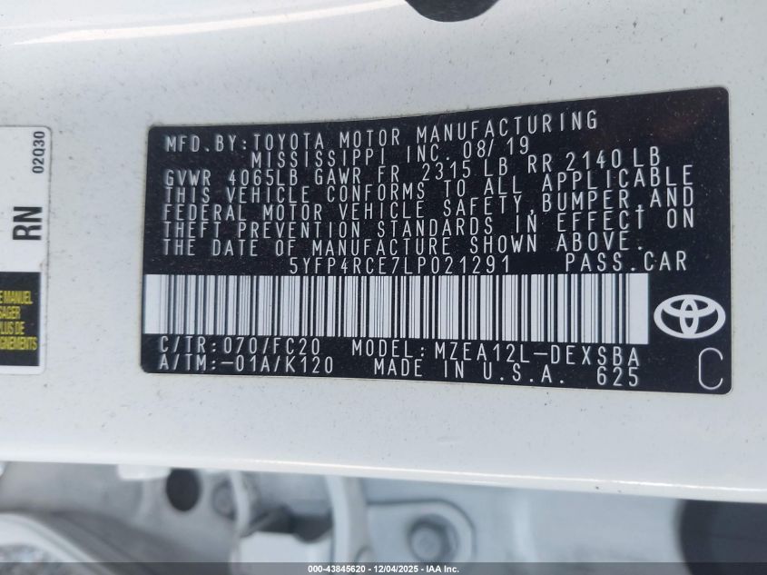 2020 TOYOTA COROLLA 2020 року Бензин, 2.0, Передній привід, vin - 5YFP4RCE7LP021291 з США