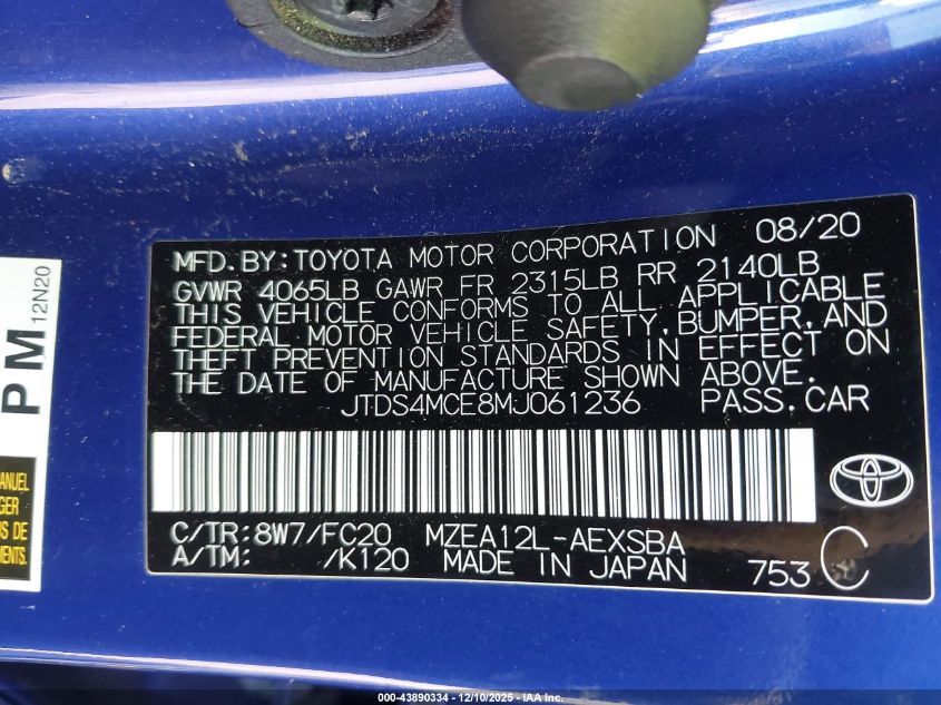 2021 TOYOTA COROLLA 2021 року Бензин, 2.0, Передній привід, vin - JTDS4MCE8MJ061236 з США