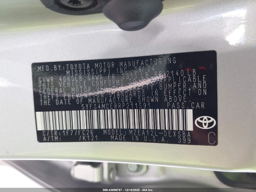 2024 TOYOTA COROLLA 2024 року Бензин, 2.0, Передній привід, vin - 5YFS4MCE8RP211591 з США