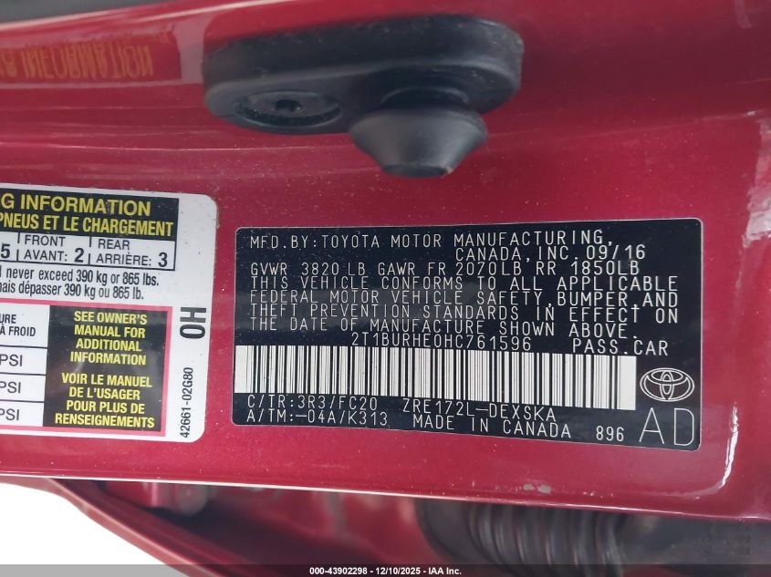 2017 TOYOTA COROLLA 2017 року Бензин, 1.8, Передній привід, vin - 2T1BURHE0HC761596 з США