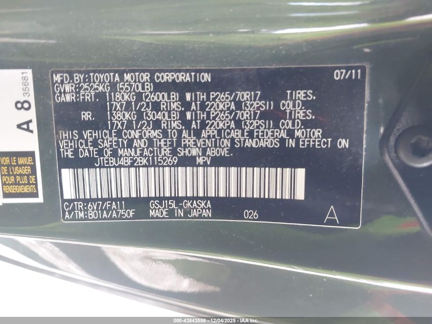 2011 TOYOTA FJ CRUISER 2011 року Бензин, 4.0, Повний привід, vin - JTEBU4BF2BK115269 з США