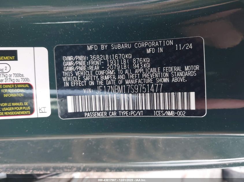 2025 TOYOTA GR86 2025 року Бензин, 2.4, Задній привід, vin - JF1ZNBM17S9751477 з США