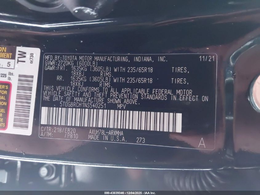 Колір ЧорнийЦиліндри 4Привід Повний привідVIN 5TDGBRCH1NS540251Стан Заводиться та їде (перевірено)Ушкодження Передня ліва AutoRIA