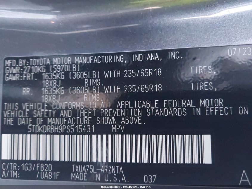 2023 TOYOTA HIGHLANDER L